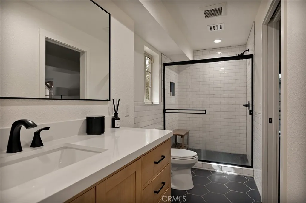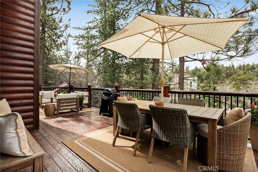 This property is located in the private, exclusive neighborhood of Rim Wood Ranch Estates down a quiet cul-de-sac. This home sits on a FULL ACRE of usable land and is the perfect spot to bring your dreams to reality. The property boasts several newly built, permitted, custom barns which can be used for all the family pets or for the ultimate toy storage facility. This modern, FULLY REMODELED, open-concept property has everything you need to start enjoying mountain life and is move-in-ready. Every square inch of the home has been updated with great attention to design details, with a fresh, neutral palette throughout. This home has a LEVEL driveway/entryway and expansive outdoor decks that span 2 levels of the home so you can take in the beautiful mountain views with West facing exposure. There is a 2-car, double door garage that can fit everything you need with an EV charging outlet and wired for a backup generator. The property also has a side access driveway that can fit an oversized RV, a 5th wheel, or boat storage. This property has been well-maintained with outdoor garden areas, custom-built retaining walls, and an outdoor sun patio in the backyard to enjoy the outdoors. The third bedroom is a fully permitted bonus room ready for use as another suite or family den/game room. There are 3 fenced off and gated areas throughout the property for your animals with consistent cross-fencing design throughout. While just minutes from Snow Valley ski resort, Lake Arrowhead, and Big Bear, yet you feel a world away in this peaceful retreat. If you are serious about buying in this