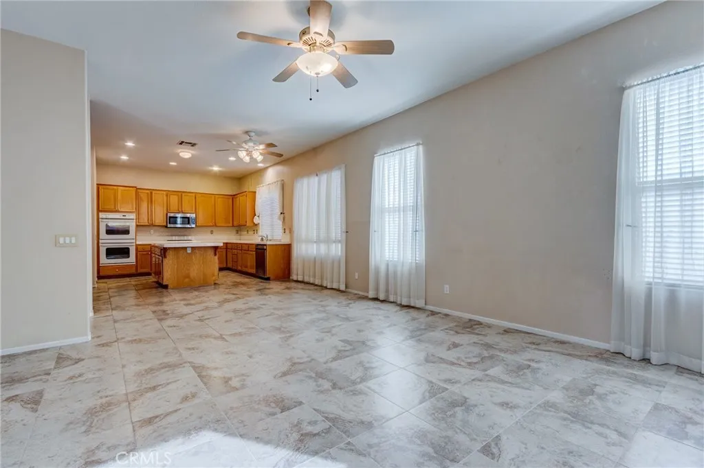 Lovely and large single-story home in Menifee's best retirement community of The Oasis. This home has a large double door entry with a formal entry as well a spacious rear facing living room opening onto a formal dining area. One wing has the secondary bedroom with private bath, as well as a large den or office. Just right for informal get togethers or meetings. The kitchen is very large and has a great center island perfect for serving many people at a get together. Next to the kitchen is a separate family room with fireplace as well as direct access to the lovely rear yard. The yard has a patio area perfect for outdoor entertainment. The other wing of the house contains the huge master bedroom with enough floor space to handle two king sized beds as well as other furniture such as a chest of drawers and a large bureau and end tables. The best feature of the home is the huge walk-in closet with three levels of pole and shelf space. You have to see it to believe it. There is enough pole space to hang hundreds of shirts, blouses and assorted clothes for hanging. It's got "crazy space" The Oasis is a wonderful senior community just one mile from Menifee's new downtown area and right off the 215 freeway.