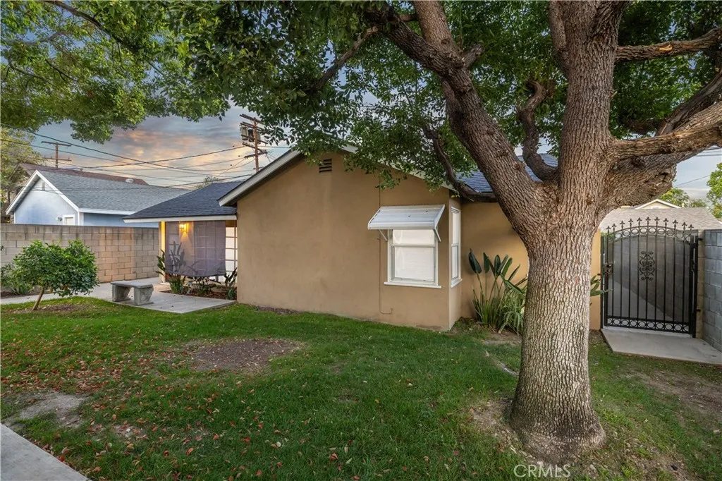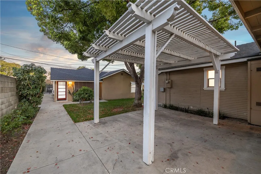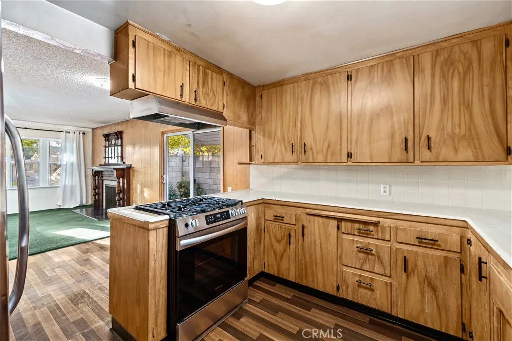 Located within walking distance to historic Downtown Upland and currently benefiting from the Mills Act, this two homes on one lot property at 548 N. 2nd Ave. and 548 1/2 N. 2nd Ave. features a front home with 3 bd, 2 ba, approx 1,488 sq ft plus a separate rear home/ADU with 1 bd, 1 ba, approx 683 sq ft, offering flexibility for rental income, guest house, or multi generational living. Each residence includes its own private garage, separate electric meter and gas, and individual laundry. The front Craftsman style home features a covered porch with stone accented columns, horizontal siding, and multi pane windows. The front yard includes mature shade trees, landscaped beds, lawn area, and a concrete walkway with a decorative garden arch framing the entry path. A long driveway along the side provides access to the rear of the property. The spacious living/family room offers large front facing windows, an original fireplace with wood mantel, and a wood paneled accent wall, plus a connected room ideal for a dining room/office. The layout flows into the kitchen and eating area creating a central living space. The kitchen features wood cabinetry, tile counters/backsplash, and a peninsula with a built in gas cooktop and vent hood. Laminate plank flooring in a parquet pattern extends through the kitchen and dining area. The dining space includes sliding glass doors to the side patio. Stainless steel refrigerator and freestanding gas range are included, with a nearby laundry room and storage. The hallway leads to the primary bedroom with hardwood flooring, corner windows, and an en