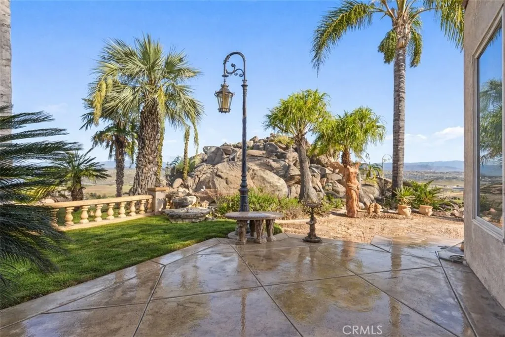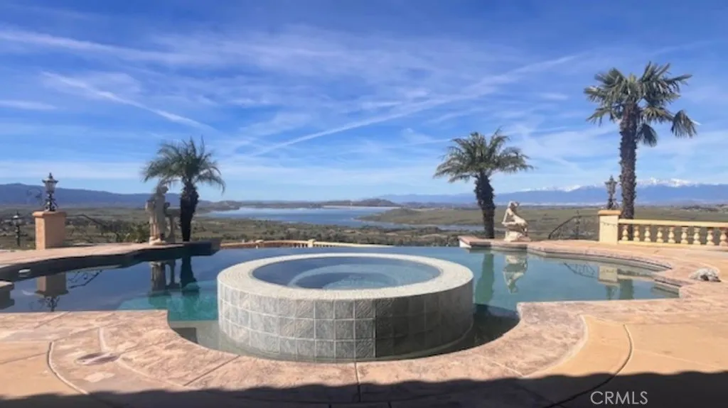 Searching for a luxury home in Lake Mathews on acreage with panoramic lake and mountain views? This 4,743 sqft custom estate on 2.85 acres at 20390 Christo Ct captures sweeping 180 degree views of Lake Mathews, an infinity edge pool, and expansive indoor outdoor living designed for elevated Southern California living. Set above the surrounding landscape, this fully custom designed estate blends architecture, craftsmanship, and breathtaking scenery. The property showcases 180 degree panoramic views over Lake Mathews, stretching toward Orange County in one direction and the San Bernardino Mountains and Big Bear in the other. Sunrises, sunsets, and evening lights create a dynamic and ever changing backdrop. The outdoor space is designed to highlight the view, featuring an infinity edge pool that visually connects to the horizon, along with custom water features, statues, and an outdoor bathroom and shower for poolside use. Multiple seating areas allow for both large scale entertaining and quiet moments overlooking the lake. A private front courtyard with a covered sitting area and fireplace offers an inviting space for relaxing or entertaining, adding a second outdoor living environment separate from the pool area. Inside, vaulted ceilings and natural stone flooring create a sense of scale and warmth throughout. Large windows and thoughtful orientation bring natural light into the living spaces while framing the surrounding views. The oversized kitchen includes a large pantry with butler prep area and opens to a formal dining space with a custom painted ceiling, ideal for host