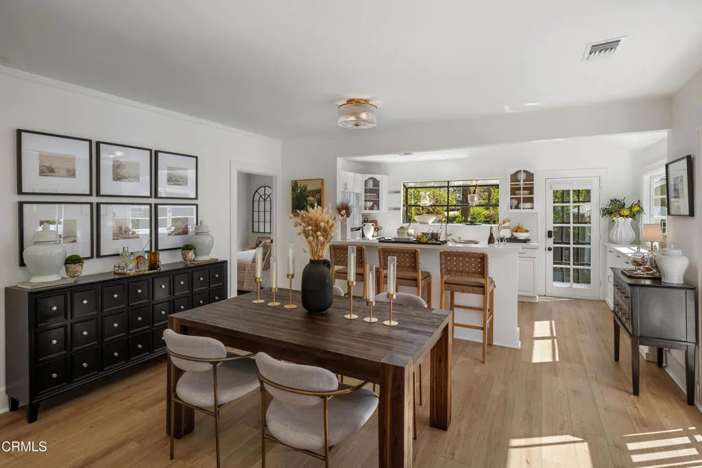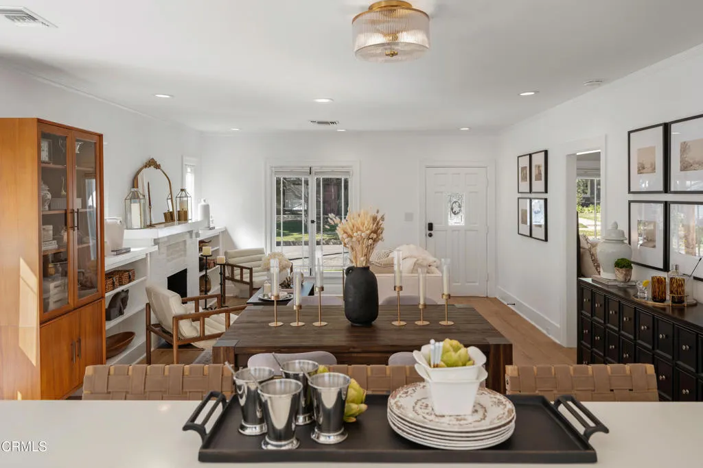 Fall in love with this beautiful Bungalow Heaven home featuring 2 bedrooms and 1 bath on a charming street set in the company of other vintage homes, yet offering updated amenities required for modern comfort. Move-in ready, this uplifting home is filled with natural light, plentiful windows, custom built-ins, and a charming brick-faced fireplace. The stylish kitchen features a stainless appliance suite and opens to the living and dining area with bar seating, a built-in sideboard and a center island configuration, all with sleek quartz countertops. The bathroom has been tastefully upgraded with classic subway tile, a walk-in shower, updated cabinetry and a premium Toto Japanese toilet. Recent improvements include a new HVAC system, roof, water heater, Halo 5 water purification system, Ring security system, and convenient keypad door locks. Exterior eaves lighting is app-controlled and easily color-customizable for holidays and special occasions. The cozy backyard is a serene retreat with a lawn area, lemon trees, and a paved patio--perfect for relaxing or entertaining. The property is fully fenced and has been configured for the installation of a swimming pool, with permit applications filed. This is an exciting opportunity to customize your outdoor oasis. The detached garage provides laundry facilities, custom storage cabinets, and an electric car charging point.
