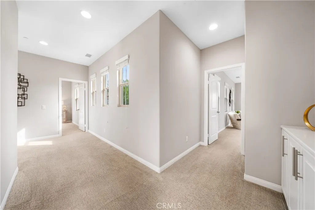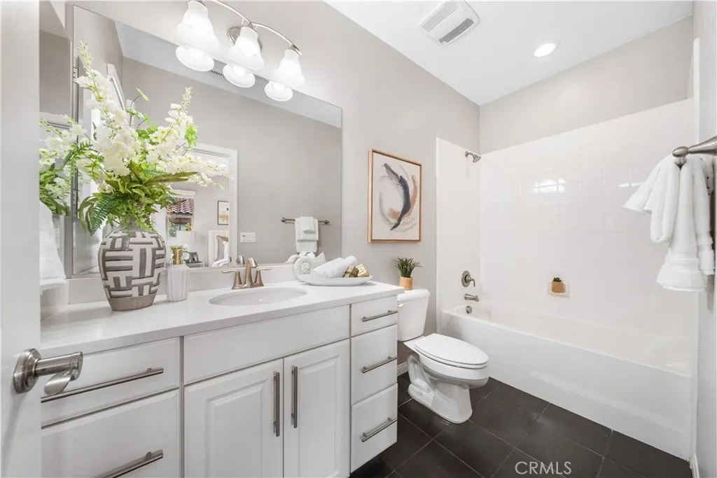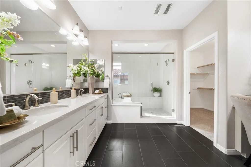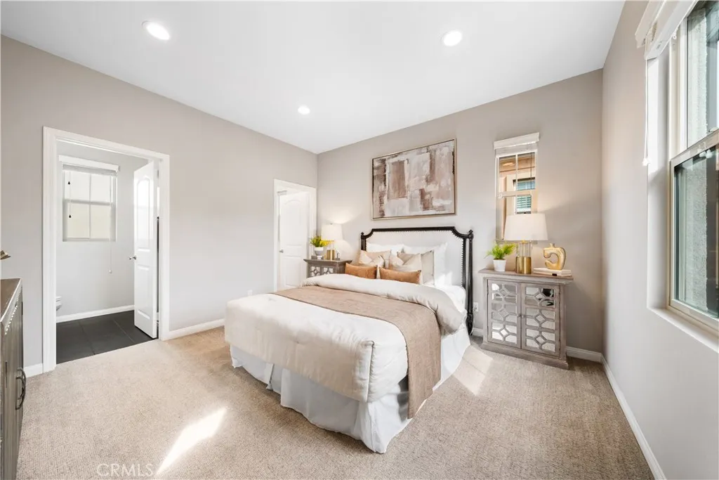 Rarely available detached corner-lot home with a private driveway, three upstairs ensuite bedrooms, and a highly desirable first-floor bedroom with a full bathroom. This well-designed residence offers exceptional privacy and abundant natural light, enhanced by multiple exposures unique to a corner location. The main level features a thoughtfully planned open-concept kitchen and living area that functions as the central gathering space of the home. The modern kitchen offers generous counter space, ample cabinetry, and seamless flow into the living roomideal for both everyday living and entertaining. Large windows and direct access to the backyard create a bright, airy atmosphere and a strong indoor-outdoor connection. The first-floor bedroom with a nearby full bathroom provides valuable flexibility for guests, multigenerational living, or a home office. Upstairs, three spacious ensuite bedrooms each include their own private bathroom, offering comfort and privacy for every occupant. The primary suite serves as a relaxing retreat with a spa-inspired bathroom featuring a soaking tub positioned within the walk-in shower, delivering a distinctive and modern design statement. As a detached corner residence, the home enjoys enhanced privacy, open sightlines, and abundant natural light. A private backyard with a built-in fire pit provides an inviting outdoor setting for entertaining or relaxation. With its rare combination of private driveway, corner lot location, flexible floor plan, and modern finishes, this home presents an outstanding opportunity in a highly desirable Irvine co