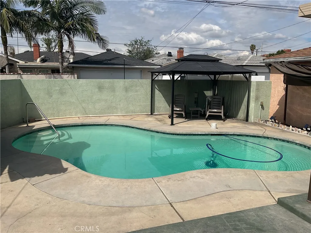 Discover this charming 3-bedroom, 1-bath pool home in Bellflower, offering 1,241 sq ft of living space, ideal for summer parties and family entertainment. Featuring granite countertops, hardwood floors under the carpet and vinyl flooring, and a detached two-car garage with laundry, this home combines comfort with convenience. Enjoy a private backyard with an attractive pavilion. Great Home in a great Location. MUST SEE. The roof the windows and outside stucco are 5 years old. Newer water heater in the garage.