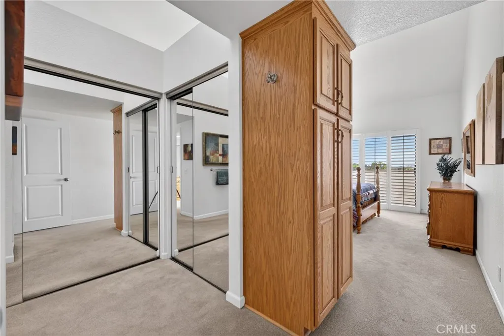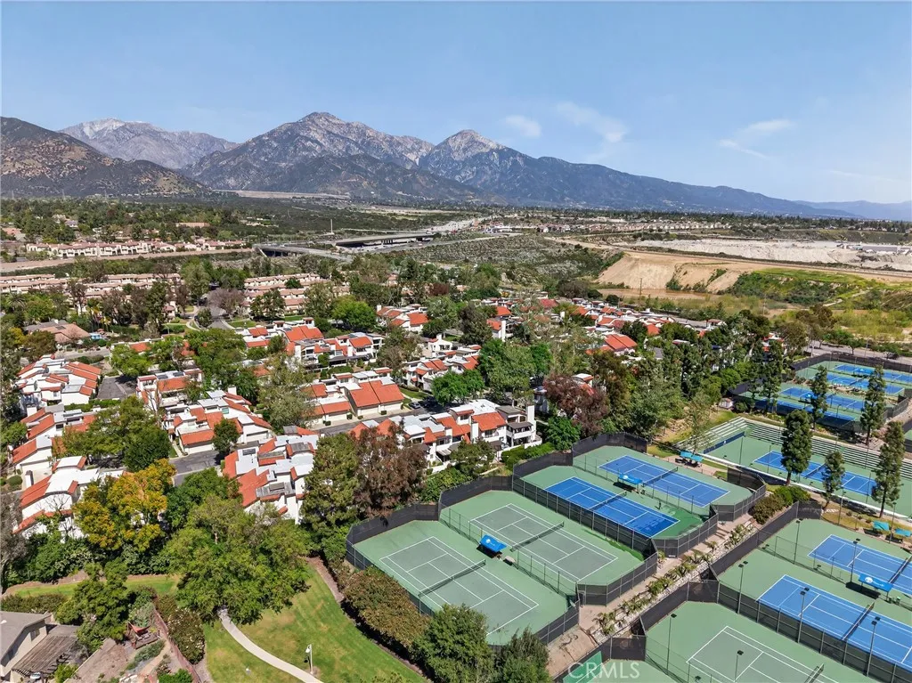 Step into one of the most exceptional townhomes in the Terraces. Perfectly positioned in the communitys most desirable location, this home enjoys a peaceful setting away from the freeway and Monte Vista's street noise. The property is private with no neighbors behind you, a coveted southern exposure that fills the space with natural light, and scenic hillside views from the second floor all creating a serene retreat. Thoughtfully designed, this residence features three spacious bedrooms, including a highly sought-after downstairs bedroom with a full bathideal for guests or flexible living. A rare two-car driveway adds convenience, while dramatic 25-foot soaring ceilings elevate the living space with an airy, open feel. Every detail has been meticulously upgraded, leaving nothing for the next owner to do. From custom KraftMaid cabinetry throughout to beautifully finished interior doors, casing, and baseboards, quality craftsmanship is evident at every turn. The home is further enhanced with upgraded countertops, remodeled bathrooms featuring new bathtubs, showers, and a sleek frameless glass enclosure, as well as mirrored wardrobes and updated flooring. A premium Bosch refrigerator and elegant plantation shutters on every window and sliding door complete the homes refined aesthetic. This is a rare opportunity to own a turnkey property in an unbeatable locationwhere comfort, privacy, and high-end finishes come together seamlessly.