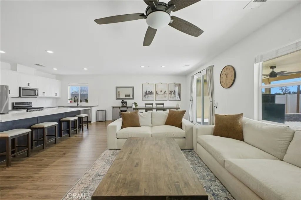 Better than brand newpractically just built! Welcome to 26459 Wreath Court, a beautifully turnkey home in the heart of Menifee, one of Southern Californias fastest-growing cities. Situated on not only a cul-de-sac, but on a premium corner lot with minimal neighboring properties, this home offers enhanced privacy, additional outdoor space, and a more open, airy feel rare and highly desirable features! Featuring 3 bedrooms, 2 bathrooms, plus a versatile den/bonus room that can EASILY be converted and serve as a fourth bedroom, home office, or flex spaceperfect for growing households. Step inside to an open-concept layout filled with natural light, soaring ceilings, and warm-toned vinyl flooring complemented by neutral designer touches and finishes throughout. An extra-wide hallway welcomes you in, setting the tone for the homes spacious and inviting design. The chefs kitchen is the heart of the home, showcasing quartz countertops, a farmhouse sink, stainless steel appliances, abundant cabinetry, ample pantry space, and a massive center island with bar seating. It flows seamlessly into the dining and living areas, creating an ideal space for both everyday living and entertaining. Additional highlights include a dedicated indoor laundry room, Wi-Fi smart thermostat, energy star home and a 2-car garage that you MUST SEE, offering excellent storage and functionality. Step outside to your private, newly landscaped backyard retreat, thoughtfully designed for both relaxation and entertaining. Enjoy BRAND NEW low-maintenance turf, clean walkways, floating concrete pavers and planter