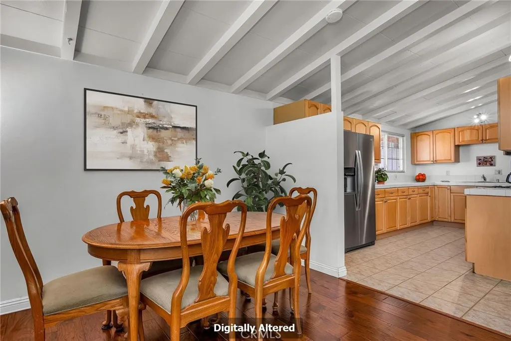 Mid-Century Charm Meets Courtyard Living in the Heart of Winnetka. A mature avocado tree and welcoming curb appeal introduce this inviting mid-century single-story residence. Just beyond, a private courtyard sets the tone for the home, offering a peaceful outdoor retreat perfect for lounging, entertaining, play activities, or a secure space for pets to roam. Inside, the welcoming foyer opens to a spacious living room highlighted by dramatic wood-beam ceilings, expansive windows that fill the space with natural light, rich engineered wood flooring, and elegant French doors that open to the backyard. The generous living and dining areas provide flexible space for both everyday living and comfortable entertaining. The adjacent dining room connects seamlessly to the well-appointed cooks kitchen featuring stainless steel appliances, abundant cabinetry, generous counter space, and excellent storage. Additional hallway cabinetry provides ideal space for pantry storage. The primary suite continues the homes mid-century character with wood-beam ceilings and an updated ensuite bathroom featuring a stone countertop vanity and a beautiful step-in shower. Three additional well-sized bedrooms with large closets and a hall bathroom with tub-shower combination complete the comfortable living space. The backyard is designed for relaxed California living with a patio ideal for entertaining and barbecuing, a large grassy area for recreation, and multiple fruit trees including avocado, orange, and peach. A detached two-car garage adds exceptional versatility with its own tankless water heater,