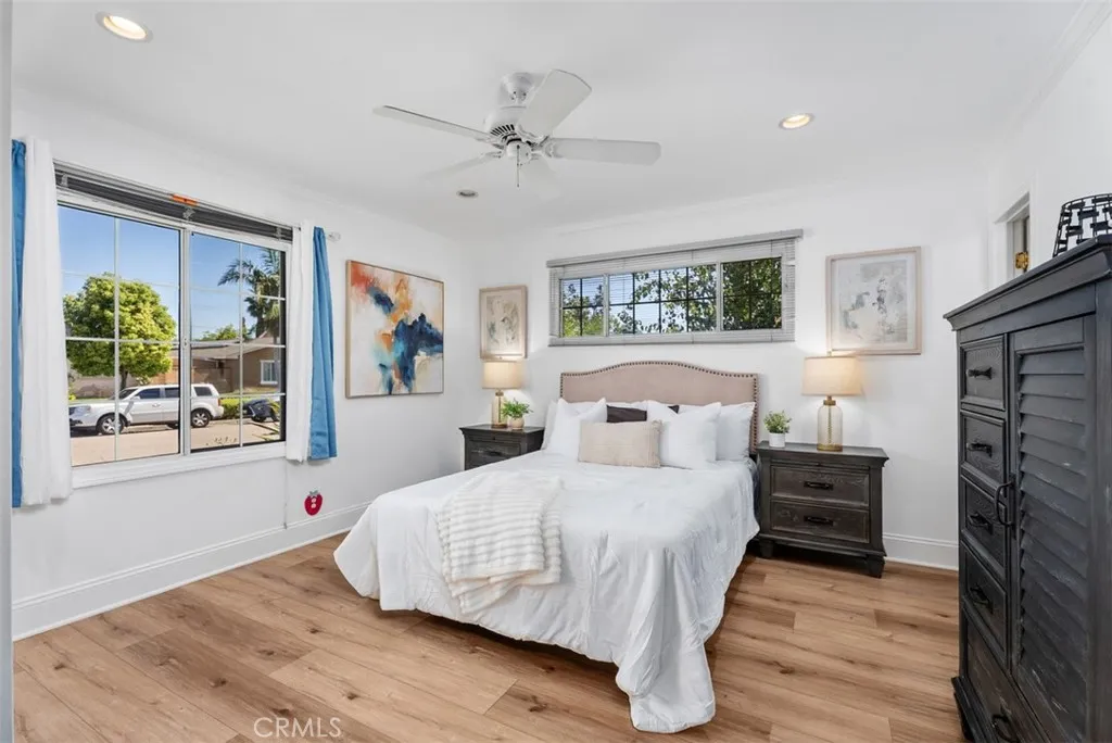 Rare Opportunity to own a Versatile 4-bedroom, 3-bathroom home that functions primarily as a Single-Story residence, with 3 of the bedrooms conveniently located on the main level. Newer Plumbing, Newer Appliances, and Freshly Painted. A standout feature is the impressive 4-Car Garage, complete with built-in cabinetry, currently used as a 2-Car Garage. The interior has been refreshed with newer Paint, creating a bright and inviting atmosphere. The living room, anchored by a cozy fireplace, features French doors that open to a covered patio, ideal for private outdoor entertaining with no neighbors directly behind. The kitchen offers ample storage with recently painted cabinetry and newer stainless steel appliances. The spacious upstairs fourth bedroom provides a flexible footprint, serving perfectly as a dual primary suite or a large bonus room. Location, location, location! This home is situated in close proximity to local parks, schools, and shopping, and also provides quick, convenient access to freeways and toll roads for an effortless commute.
