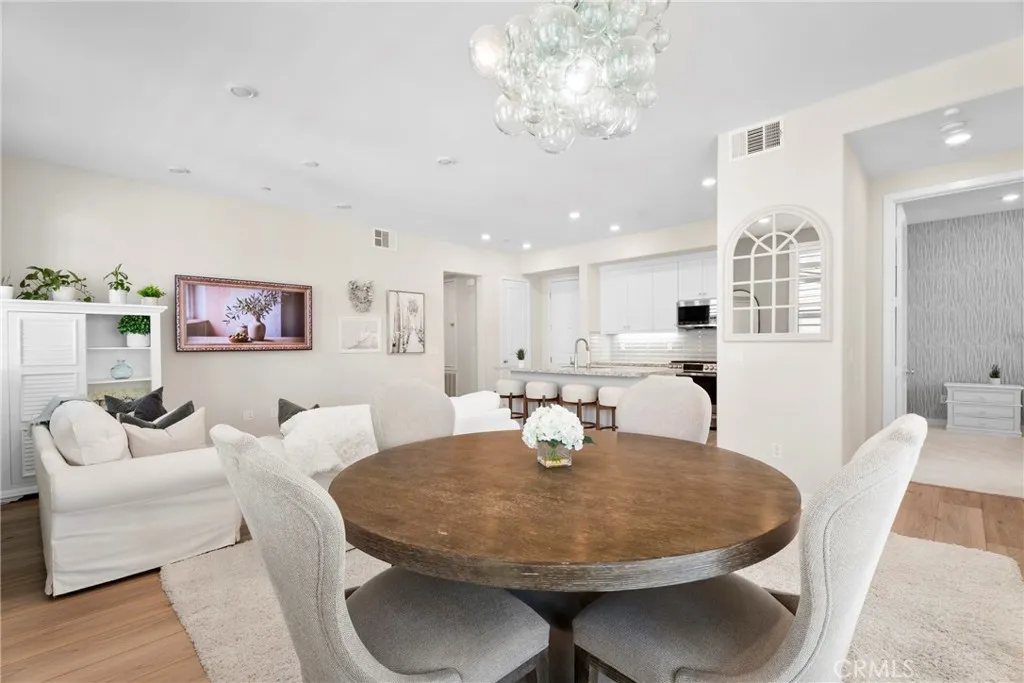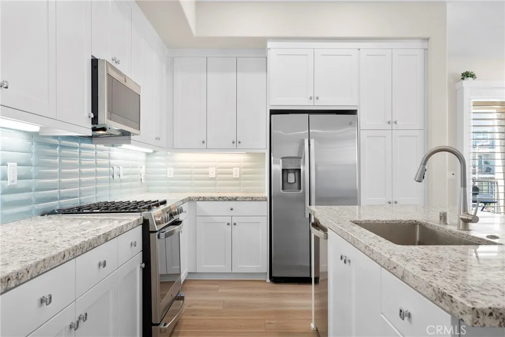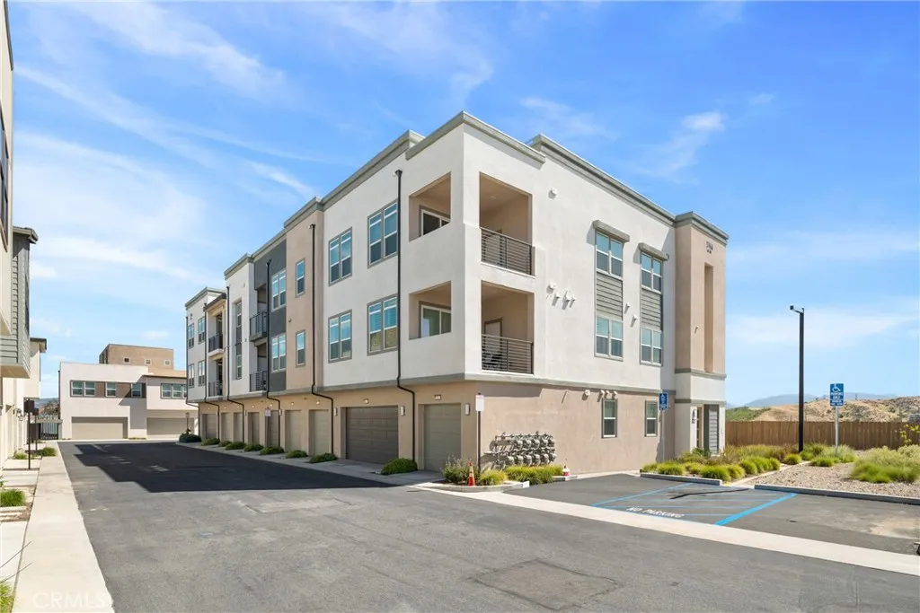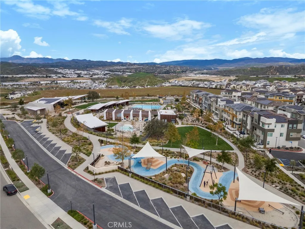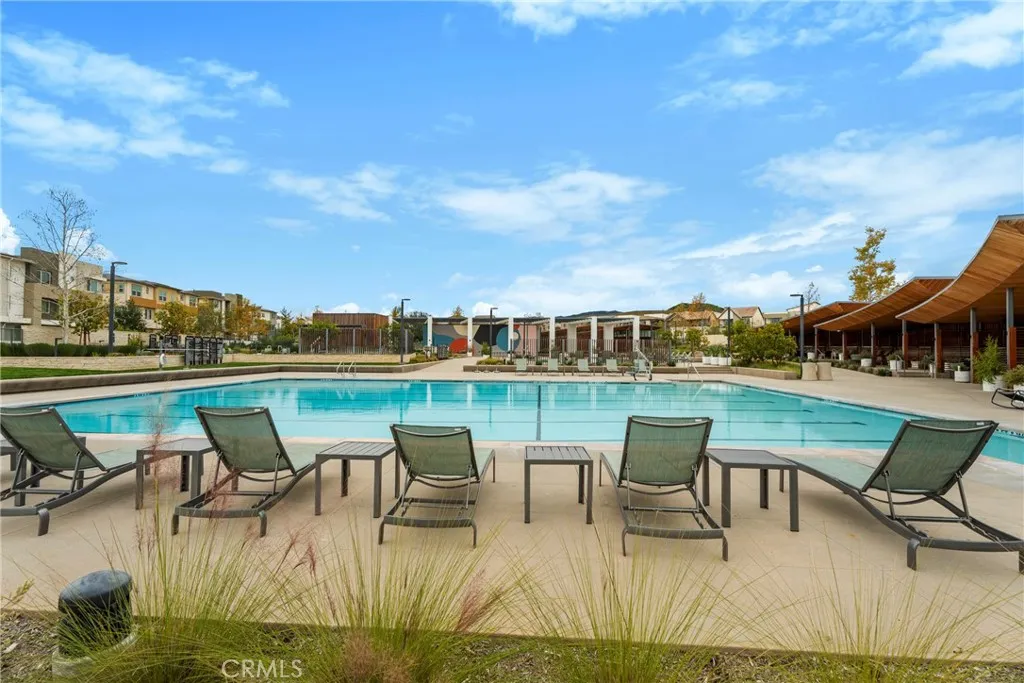 Former model corner residence with designer upgrades, EV-ready garage, and a private, light-filled setting. Ideally situated in a private end location, the home is filled with natural light and features an open-concept layout that flows seamlessly to a set-back balcony, creating a quieter and more private living experience. Thoughtfully designed and upgraded throughout, the interior showcases custom paint with refined accent detailing, designer lighting, 100% American basswood plantation shutters with split-tilt functionality, plush new carpeting with premium padding, and luxury vinyl plank flooring. The kitchen and living spaces feel both elevated and functional, with sleek soft-close cabinetry and a clean, modern aesthetic. The layout lives larger than expected, offering oversized closets and abundant storage rarely found in similar homes. As a former model, the property also includes smart-home features, a private tandem garage with EV charger, custom built-in shelving, a whole-home water filtration system, and additional nearby private storage. Located within one of Valencias most desirable communities, this thoughtfully planned, eco-conscious neighborhood offers resort-style amenities including pools with cabanas, community gardens, weekly farmers markets, parks, scenic walking and golf cart trails, and expansive green spaces. The community also features EV-friendly infrastructure, scenic mountain views, and notably lower HOA dues compared to many newer developmentscontributing to a more favorable overall monthly cost compared to many newer developments with significan