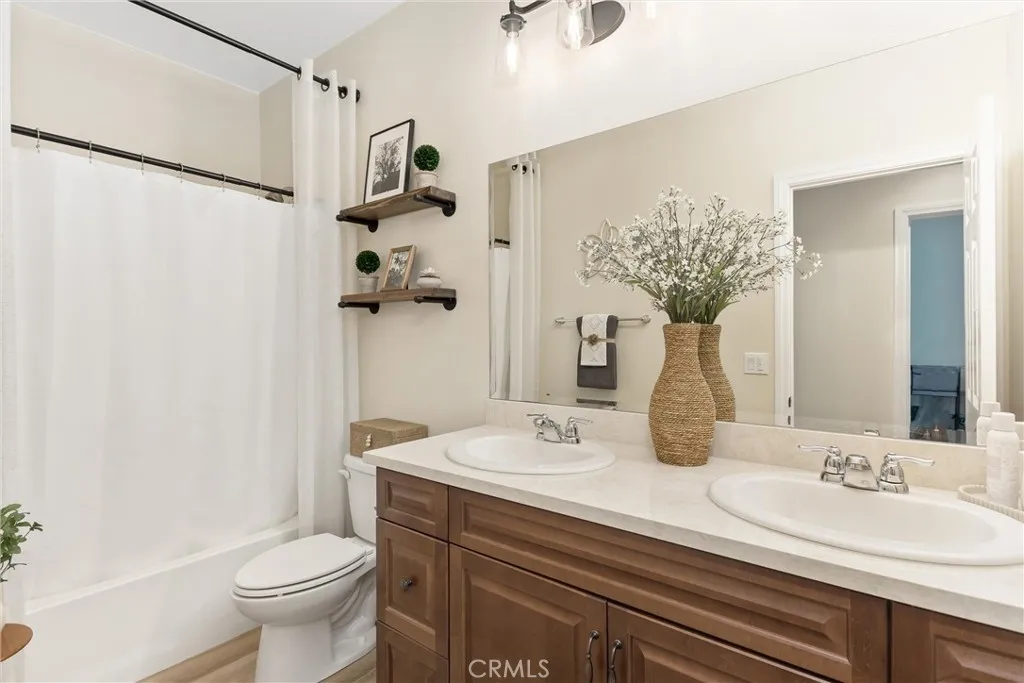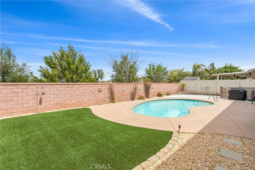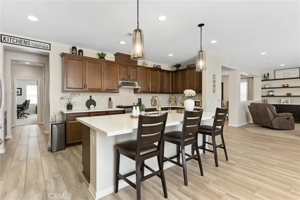 Better than new in Mahogany Hills, this single-story POOL home is the definition of model-perfect living. Immaculate, thoughtfully upgraded, and maintained with exceptional care, it offers a level of quality and presentation rarely found on the market. From the moment you arrive, the elegant front entry and striking custom door set an elevated tone. Inside, an open and airy layout unfoldsenhanced by upgraded tile flooring, 9-foot ceilings, and abundant natural light that accentuates the homes seamless flow. Just off the foyer, a private en-suite bedroom with custom closet cabinetry provides an ideal retreat for guests or multi-generational living. A formal dining room sits adjacent, perfectly positioned for effortless entertaining. The heart of the home is the expansive family room, anchored by beautifully crafted built-in bookshelves and an entertainment center. This space opens seamlessly to the oversized kitchen and casual dining area, creating a true great-room experience. Designed for both style and function, the kitchen features a generous center island, extensive cabinetry, abundant counter space, a premium appliance package, and a butlers pantry with wine fridge. A sliding door off the dining area extends the living space outdoors, enhancing the homes indoor-outdoor lifestyle. Privately tucked away, the primary suite offers a serene escapefeaturing a spacious walk-in closet with custom cabinetry and a beautifully finished bath. Three additional bedrooms are thoughtfully separated, providing comfort and flexibility for family or guests. A versatile office includes a