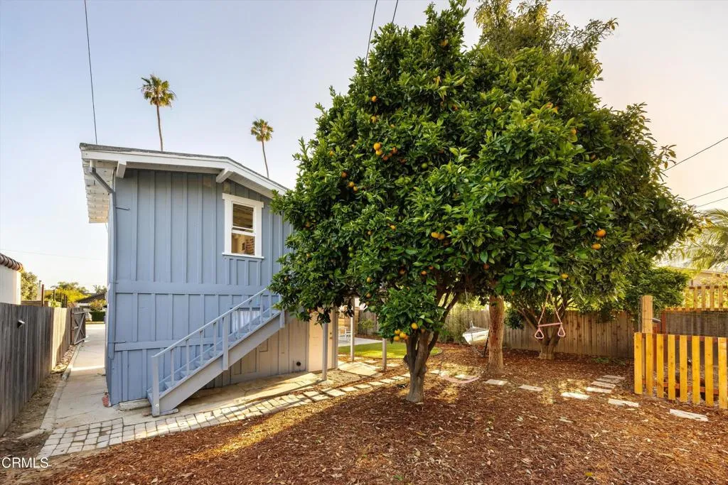 A remarkably intact Airplane Bungalow from the early 20th century, this 3-bedroom, 1.5-bath home reflects a distinct architectural moment in California. Distinguished by a second-story living space centered on the roof - and often likened to the cockpit of early aircraft - the home represents a regional interpretation of the American Craftsman style, designed to maximize light, airflow, and views. At 1867 Poli, this defining upstairs feature draws in coastal breezes, afternoon light, and a glimmer of the Channel Islands through a series of double-hung windows and a pair of Peter Pan-like casements. Downstairs, a well-proportioned living room opens to the dining area and kitchen, while original pocket doors offer flexible use of a generously sized adjoining room. Original character endures throughout in a range of preserved architectural details, including wavy glass panes, select pine floors, solid paneled doors with original hardware, and even a working skeleton key. A freestanding two-story garage, permitted in 1928-29, features carriage doors, an upstairs 'sleeping room,' a half bath, and ADU potential. Watch the light shimmer through a screen of silver sheen, unfurl in the sunroom where plants and daydreams flourish, or rinse off the surf and unwind in the backyard. Recent updates include a new electrical panel, water heater, private sewer lateral, updated bathroom fixtures, refreshed paint, a paver patio, and rear landscaping- setting the stage for this unique home's next steward. Ideally located at the historic edge of Midtown, adjacent to the Hobson Heights neighborh
